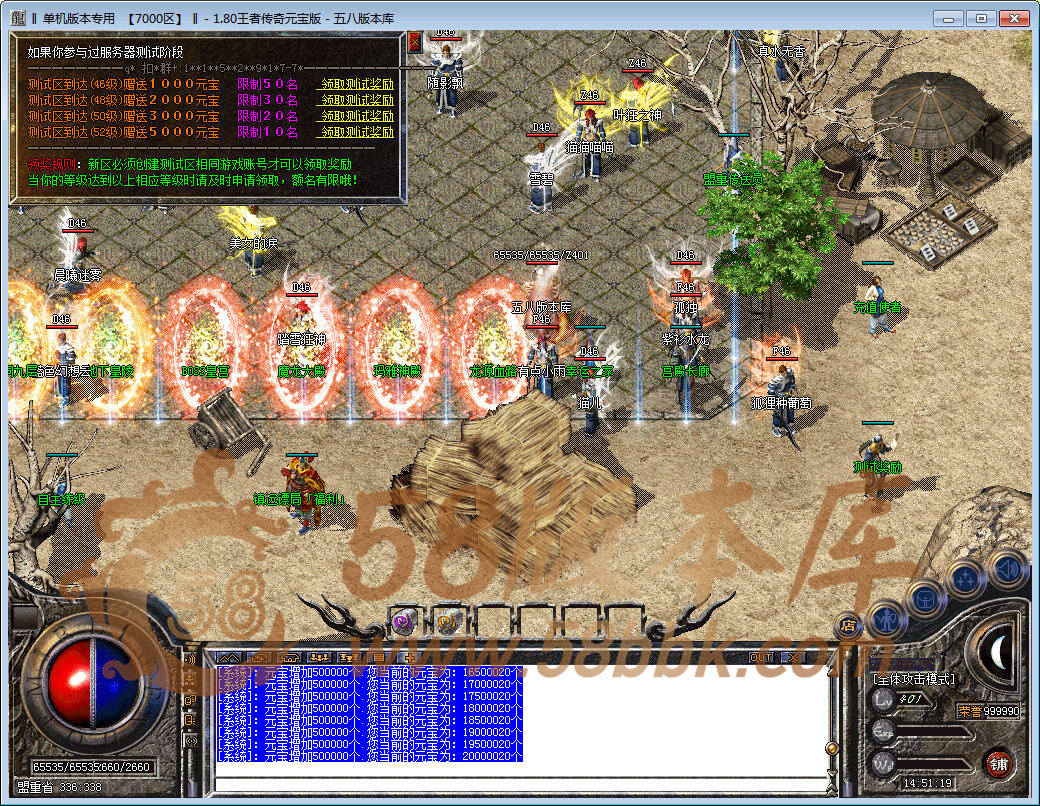 【版本介绍】:开区第三天合区攻城.首次拿沙奖励20W元宝!
