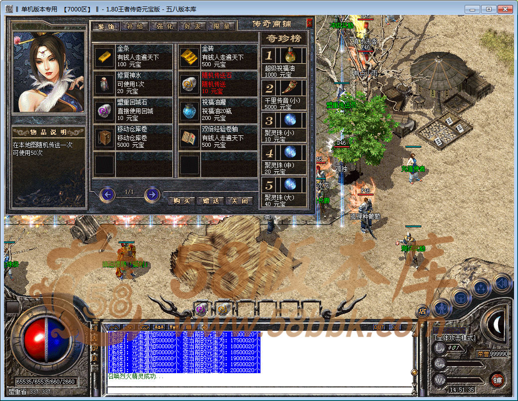 【元宝比例】:1:300 点卡送90%网银送100% 多冲多送.在游戏里面喊能给你比例主动加你的都是骗子请谨慎!