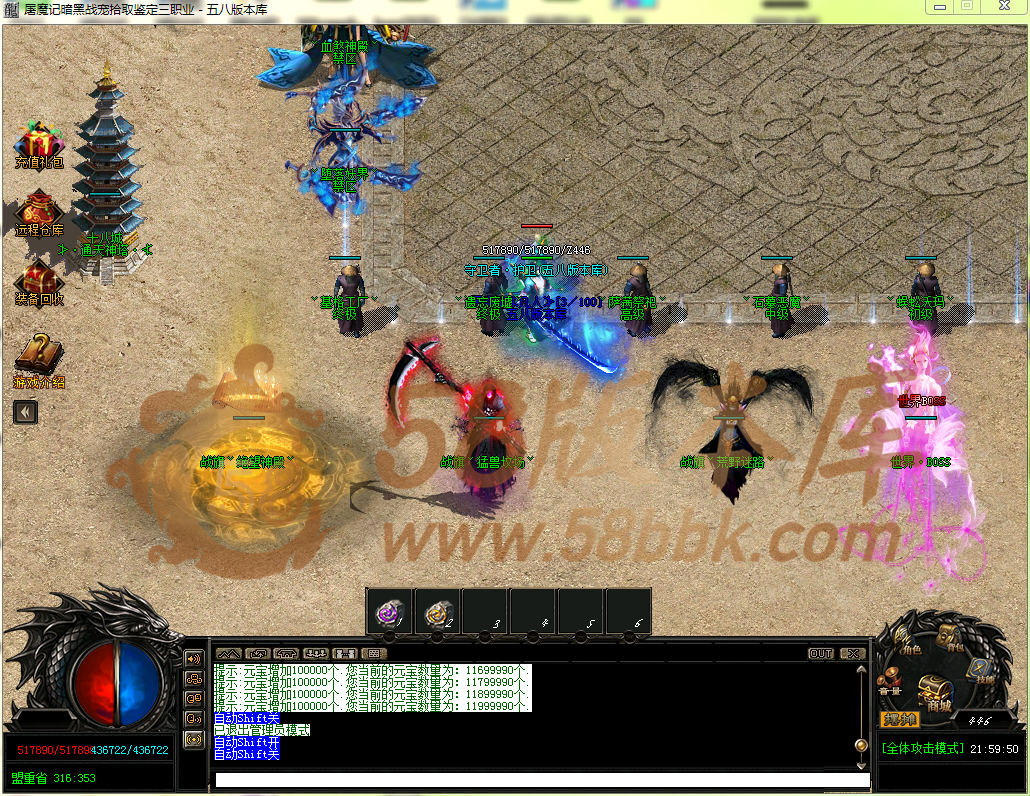 【游戏介绍】: 活动:世界BOSS 各大城主BOSS 天降积分元宝 行会BOSS 以及恶魔广场更是双倍爆率!
