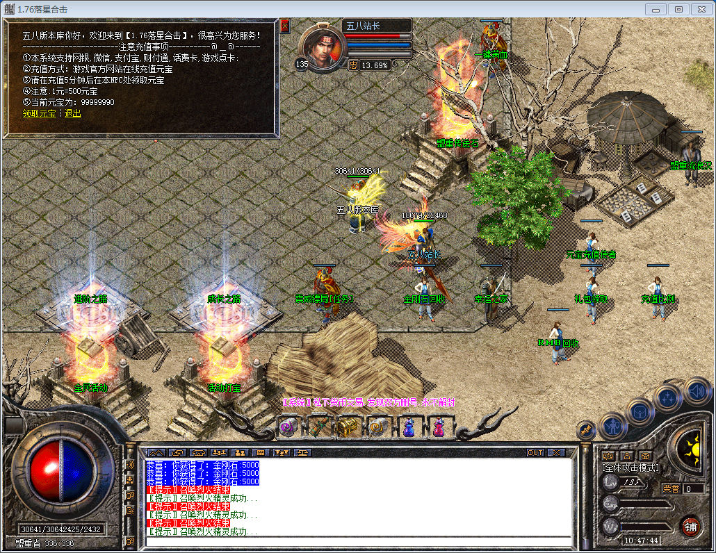 游戏更新:增加米回收,心灵召唤技能,提升打宝效率,不定时更新实用功能活动,更新功能时保证不停区.