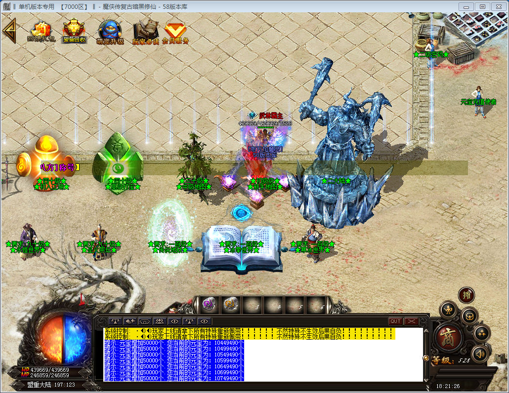版本介绍本服游戏设置为暗黑型复古修仙版本,各种装备及天赋的搭配能让你有多种的发展方法