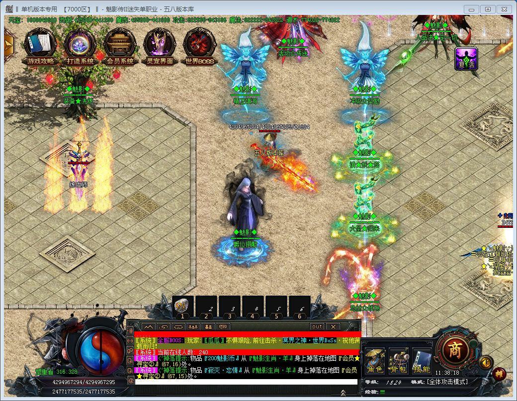 各大地图都有BOSS。玩家可以打元宝或者魅景币召唤终极宝宝。可横扫任意BOSS。