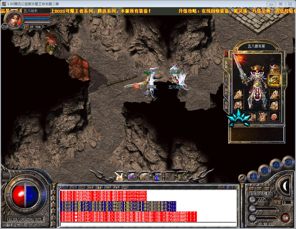 【爆率介绍】:本服所有装备全部可以爆出.无保留.装备全靠打.BOSS大怪爆一切装备!
