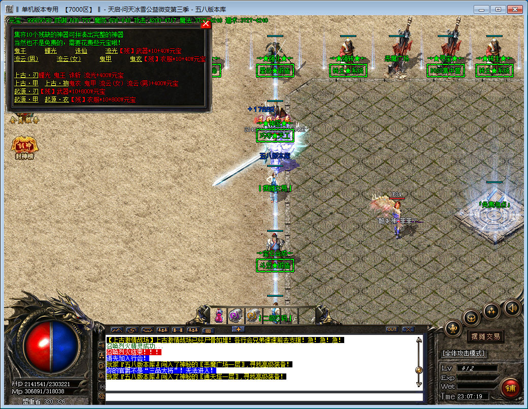 装备,米,元宝等都可靠打怪获取,专为散人设置!