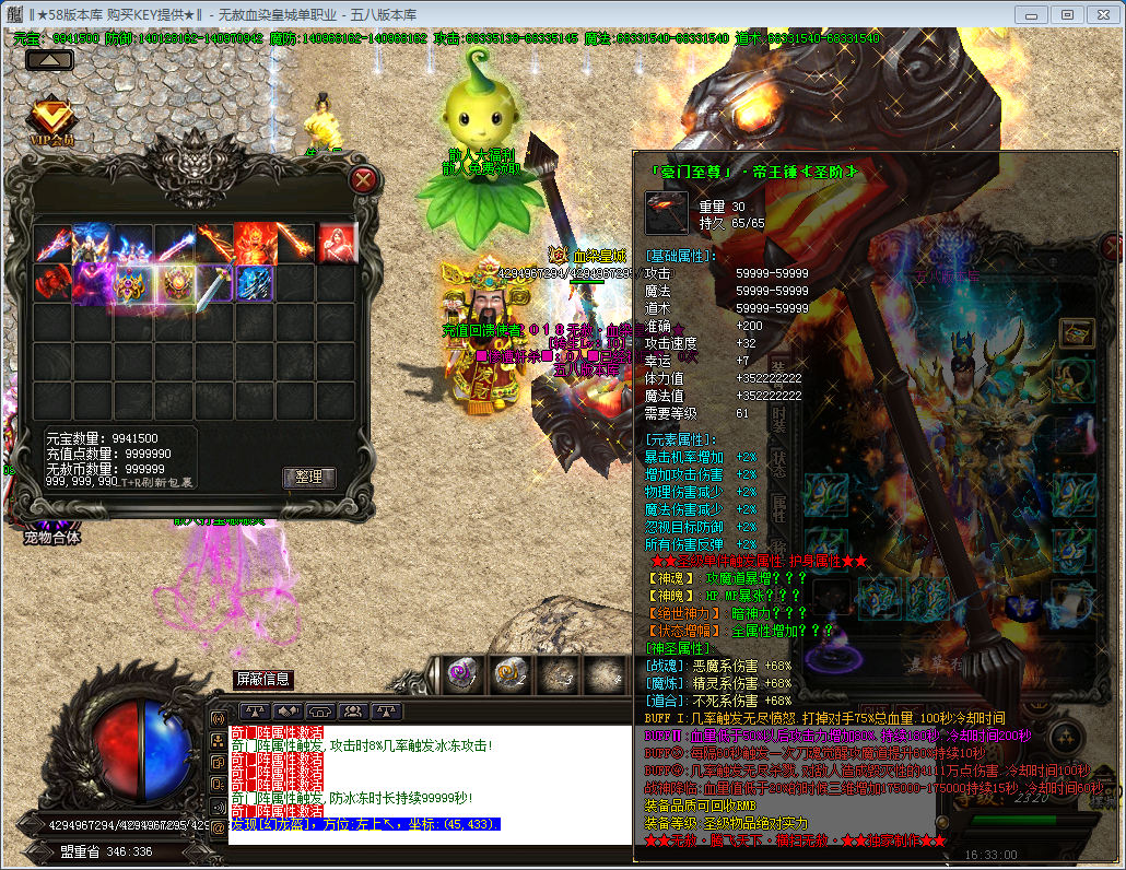 [装备出处]:本服装备全爆,元宝好打,在线回收,装备保值, 快加入吧。