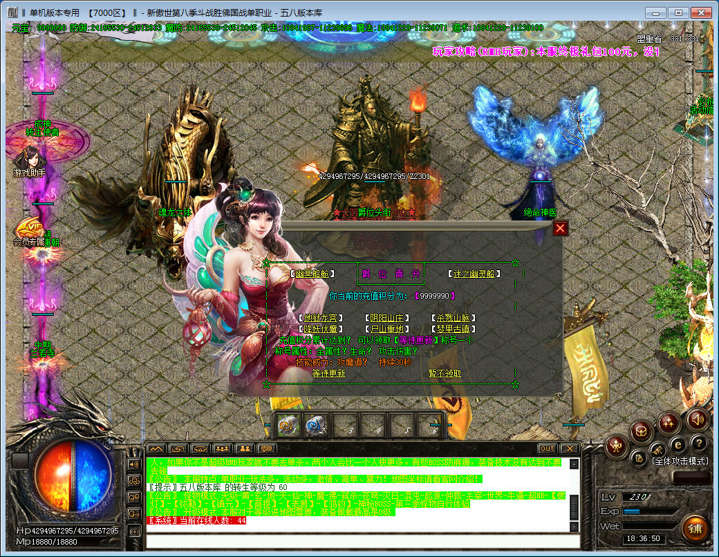 【傲视第8季·斗战胜佛】 ----------------------------- 遥忆昔日传奇梦 剑影刀光杀气浓 兄弟情深悲欢共 夫妻恩爱生死同 杀猫逐鹿出新村 斩妖除魔入盟重 近观绿涛汇碧海 远眺青山有苍松 也曾毒谷遭蛇吻 也曾矿区做苦工 也曾惊喜暴神兵 也曾郁闷砍蛆虫 熬到三五学终技 从此天下我英雄 初次攻城显身手 沙城遍地是蛟龙 道法施威电符猛 战士逞强火腾空 龙纹骨玉加裁决 对酒当歌铲皇宫 三更战罢有余悸 旷野处处闻哀鸿 为报友仇下祖玛 为雪妻恨清蜈蚣 哪有英雄怕诅咒 何来好汉惧名红 本服特点:单职业-玩法多,活动多,激情、简单、暴力!地图坐标请看官网介绍!怪物模式:无级-黄-玄-地-天-仙-神-魔-佛-弑杀-苍穹-灭日-混沌-起源-仲裁-主宰-世界-牛逼-超NB-【燃灯】-【弥勒】-【镇米】-【菩提】-【老君】-【鸿钧】-神秘BOSS-第三季怪物自行体验升级模式:本服对于等级进地图需要,装备佩戴最高是0级.装备模式:套装属性强大,神秘神器装备,后期分打怪类装备,PK类装备。分别给与各种喜欢打装备和PK的玩家不一样的体验。PS:打怪类的对人物完全无用,PK类的对怪物无用。单职业说明:本服只有一个职业,出生送战士基础技能,然后期间打出来的所有技能都可以修炼。超强力技能有:十步一杀类新式技能,倚天辟地,彻地钉,魔法盾,召唤类等等太多。其中施毒术是必备技能,本服的黄毒刻意加强,打怪如果没有黄毒,速度减一半。人物有防毒装备。面巾-盾牌-宝石-附带防毒。爆率介绍:BOSS是小怪的10倍爆率,白色-黄色-红色,boss别轻易挑战,可能你还没过去就死了!红色请血量20亿以上再去挑战,散人福利地图刷新超级BOSS年兽!超级宝藏进去就发财了!玩家攻略(免费玩家):上线就送秒怪神器初级打野刀,一刀秒血3000W,前期地图无任何压力,后面的高级秒血时装全部能爆,就看人品。玩家攻略(米玩家):本服终极礼包100米,没有土豪,随便冲100玩转整个服。炼器之魂获得:质量=分解装备,大部分的装备都可以分解为炼器之魂,炼器之魂用来升级武器的炼魂,炼魂越高,属性加强越厉害,绝对保证公平。GM提醒:本服开了挂,不要浪费精神了。配合超重要,尤其是技术。后期怪物血量攻击都很高,很容易死人,如果你不是超级米玩家就不要去单杀。两个人会比一个人快更多。有些BOSS防麻痹,装备技术没有达到不要去碰