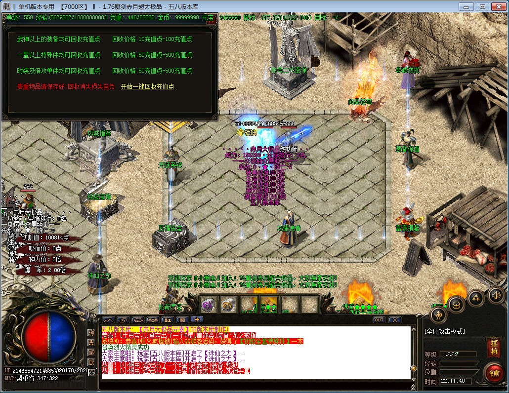 【1.76赤月大极品】开放米摆摊系统,所有一切商品交易,玩家自行定价。