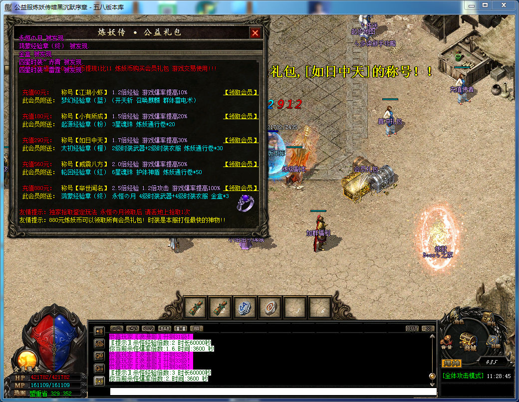 【会员介绍】 游戏有4种会员,纯公益服,无其他任何坑爹消费,所有物品玩家自己获取。