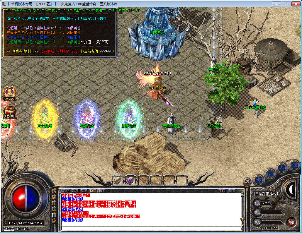 元宝1:1000,测试区多送20%;网银赠100%,点卡90%