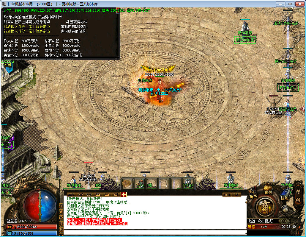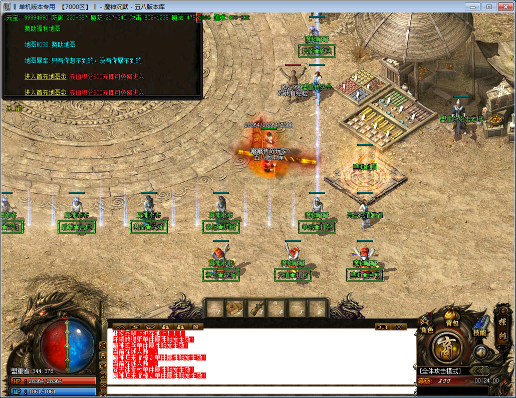 ============================================================ ★.【新人升级】:土城有泡点使者.也有经验稻草人.打BOSS得米可换取顶赞★.【元宝比例】:点卡1:400 点卡送80% 网银送100%!所有玩家全部网站冲值!★.【游戏介绍】:有在线回收. 会员有随身仓库. 本服地图超多~★.【职业建议】 :前期建议玩道士.法师.去水上世界.蚂蚁洞.尸王打书籍.★.【赞助指南】:蓬赞助玩家可以先去爬塔.神魔塔升级很快.★.【道士介绍】:道士宝宝变化:50-80-120-180-255 按等级变化34234★.【初级装备】:危险传送.个大地图都可以打一些初级装备34234★.【吸血装备】:强化魔链-轩辕圣链-神魔项链-魔神项链