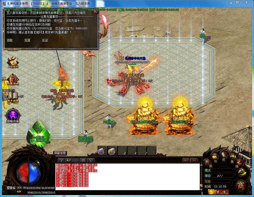 【充值比例】1米=200W元宝+5000诛神币+30000充值点.网银多送100%.多充多送!