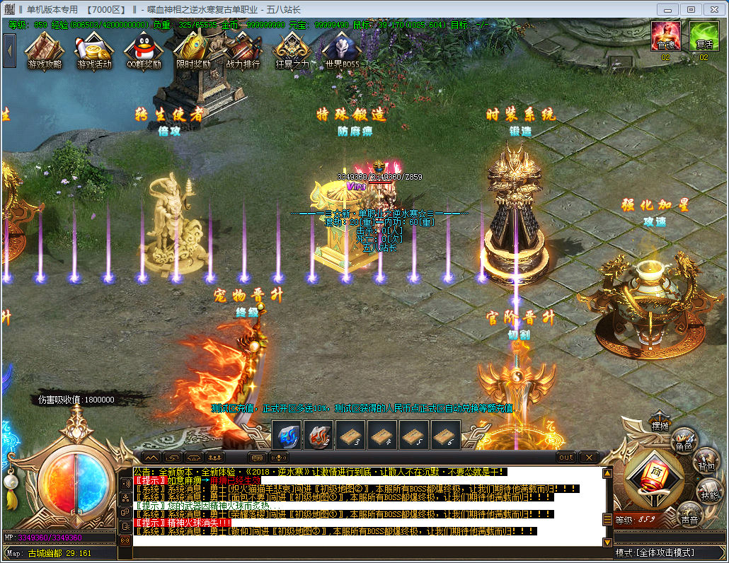 【介绍】本服为复古公益单职业,只出售会员,不出售元宝,爆率全开,一切靠打