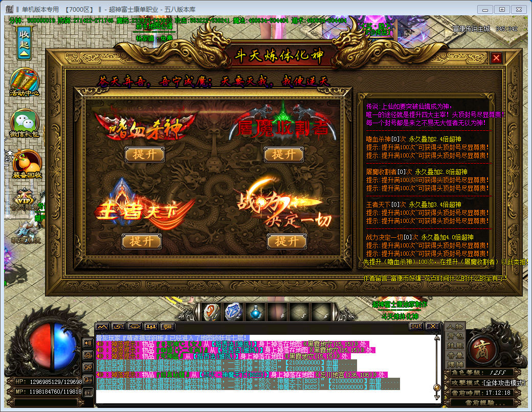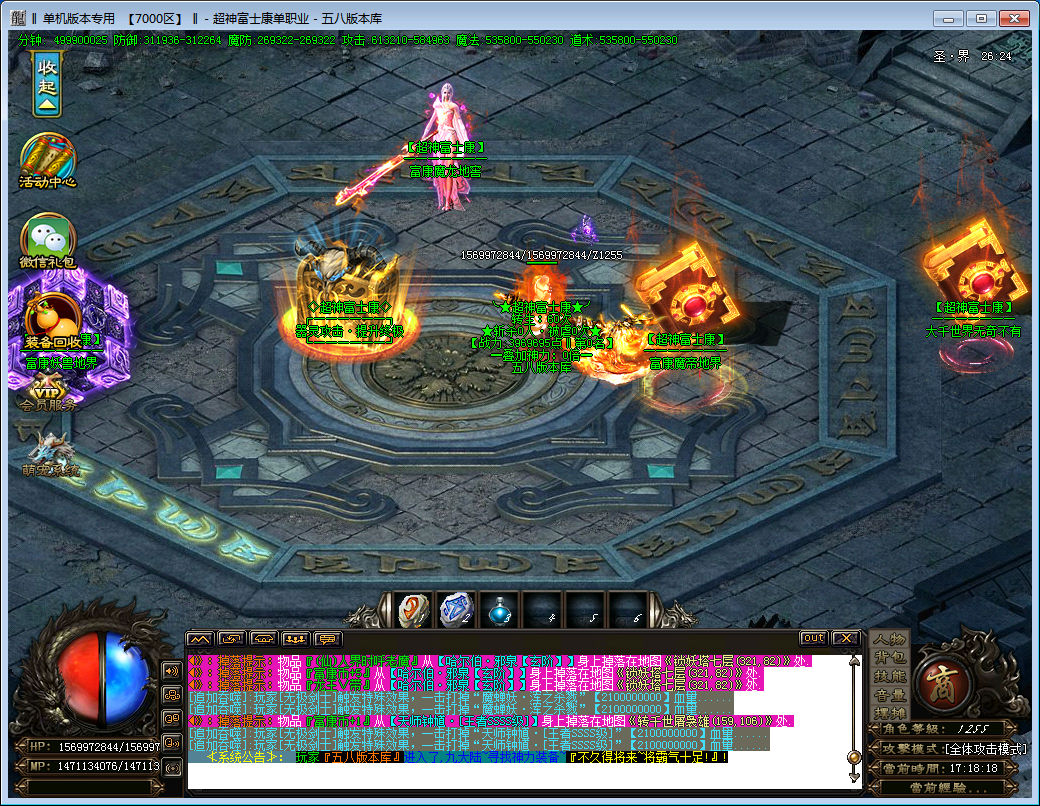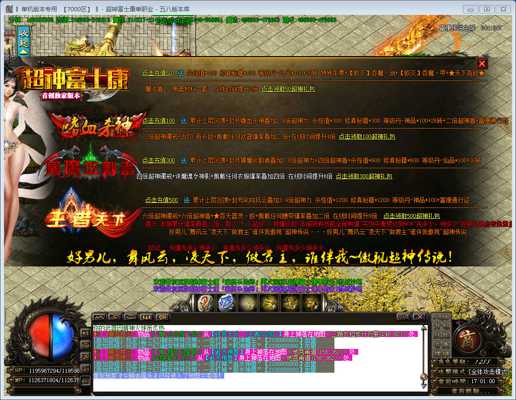 【最新内容】:充值回馈调整;装备属性调整同等装备无秒杀;怪物属性与爆率调整;