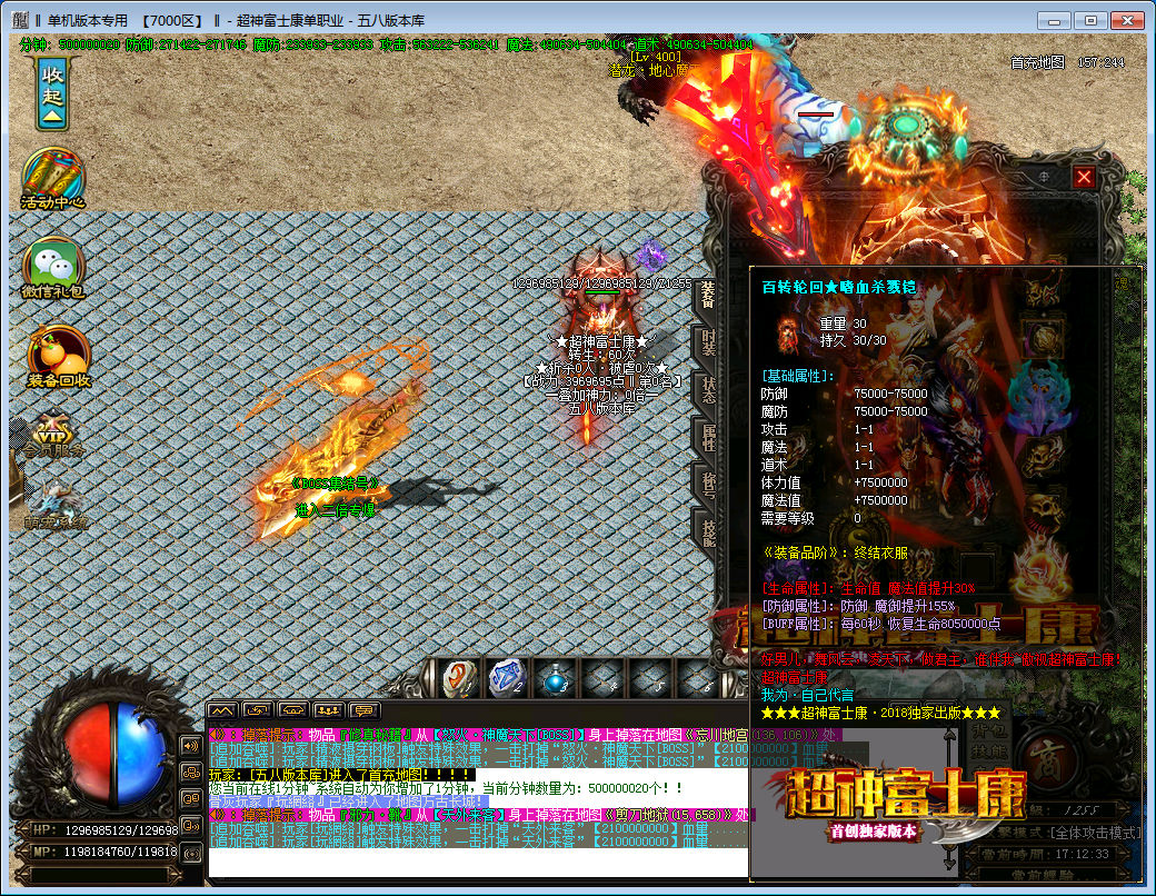 【游戏介绍】:全新玩法:本服80%怪物全部为BOSS、满屏BOSS等你来砍!
