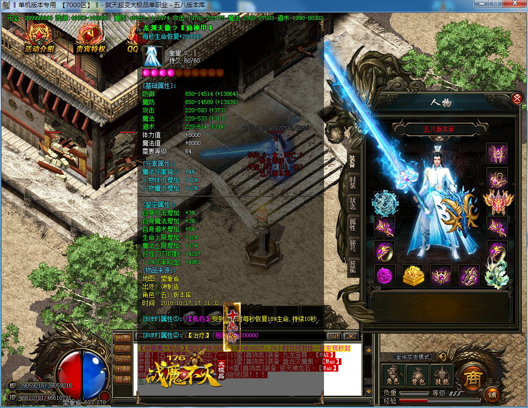 *5.高级技能,解毒术,护体神盾,魔法盾,十步一杀所有BOSS都可爆出,打不打的出看脸!*