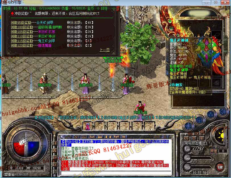 等级介绍:等级好升 本服120级封顶 长久耐玩 等级好升 元宝好打 装备一切靠打