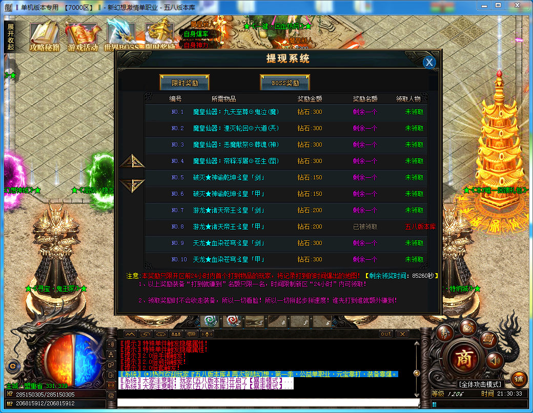 怪物首杀 装备首爆 可大量满足 散人玩家的需求 可获得网银充值 直接领取赞助