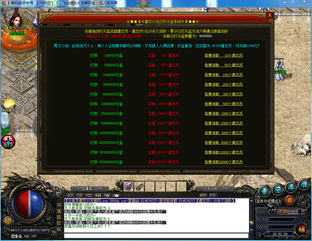 【新闻】本服装备全爆,元宝好打,在线回收,装备保值,秒到快。