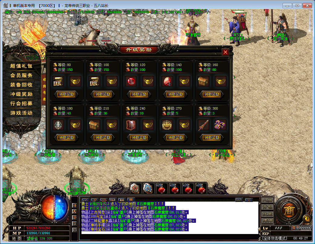 【游戏介绍】: 独创打怪模式,全图刷BOSS,调整所有分区爆率,激情耐玩。拒绝一夜情玩家。打造长久游戏!!