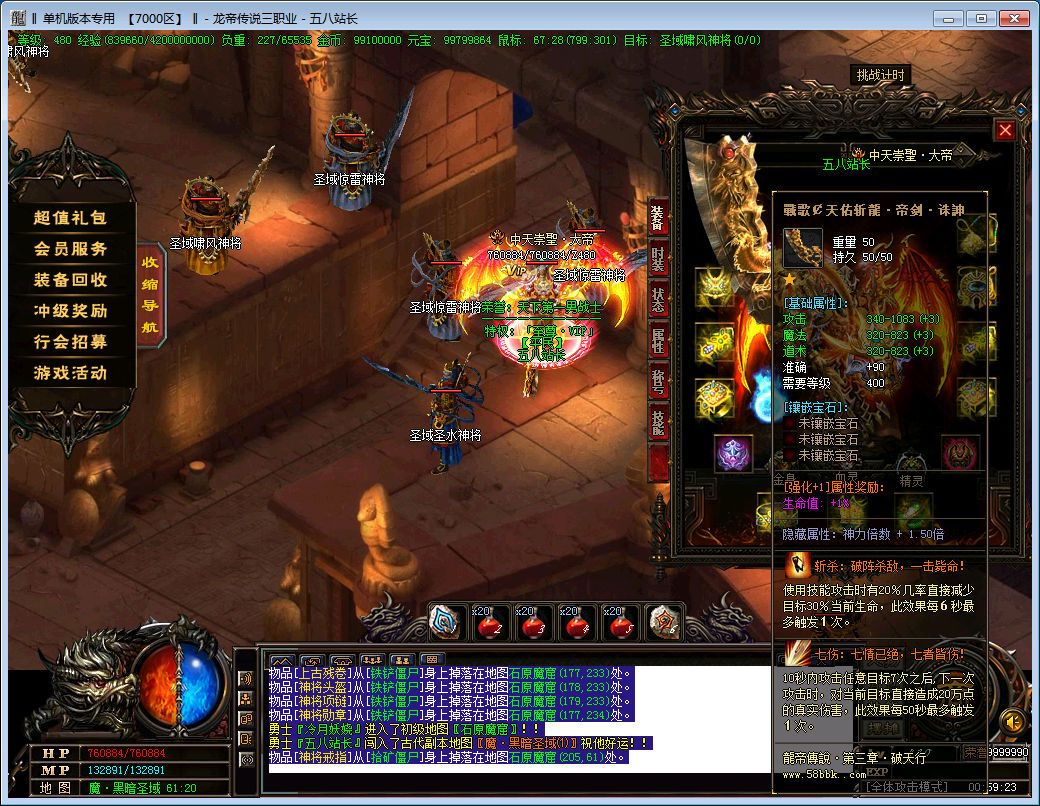 【游戏介绍】: 本服所有装备全部靠打,所有BOSS均有终极爆率,屌丝也可以逆袭。