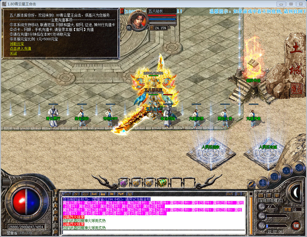 1.80青云星王合击传奇版本-回收-特色BUFF-自动喝药-充值回馈