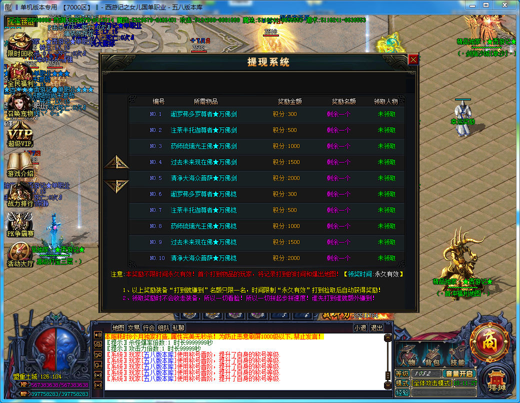 【特色】关于回馈点的来源(针对散人)可通过充值积分兑换回馈点,也可以打怪爆出红包增加回馈点(爆率相当可观)。