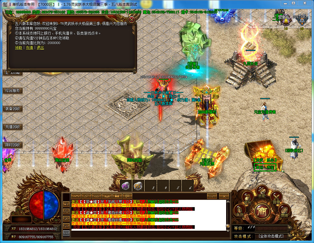 【元宝充值】 本服元宝比例 1:2000000+200充值点+200金刚石