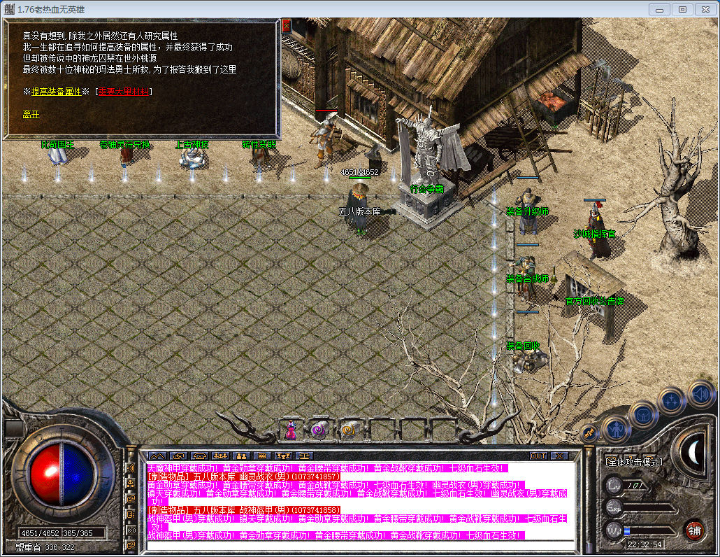 ⑤【版本特色】:本游戏所有装备靠打、等级靠手动升级、元宝装备保值、官方提供米回收装备功能、散人必选骨灰赚钱