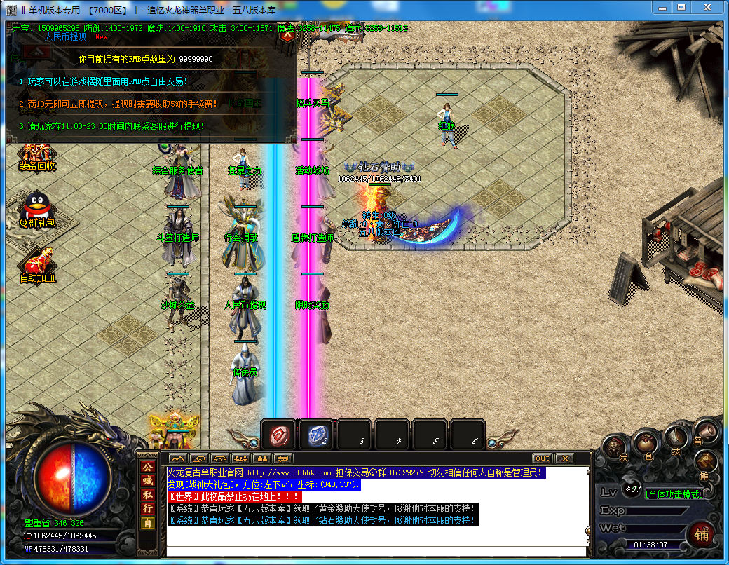 游戏主打充值1米:50W元宝 正版公益 首选 装备永久回收