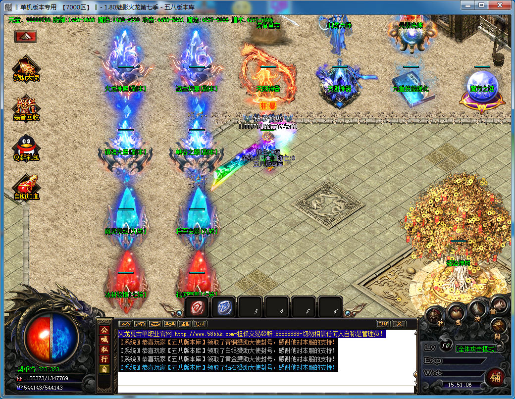 公告:占沙奖励:新区第2天合区,第2天统一攻沙,首次拿沙奖励5000万元宝,88米,