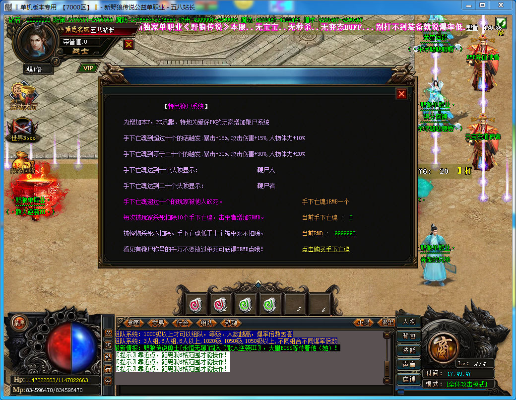 游戏特色:2018年12月呕血制作最新野狼传说,专为散人而做!激情的同时还能赚钱!