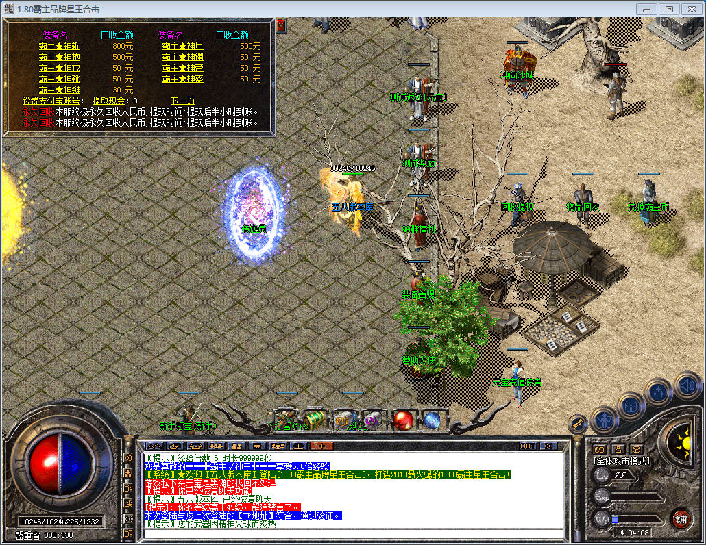 游戏超多活动,散人飞速起步,人形怪爆终极首饰及剑甲,所有装备都能一键回收.元宝超好混!
