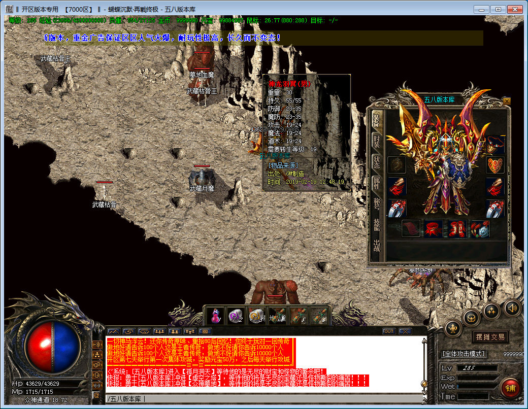【郑重申明】:本服所有物品即可爆出,圣级装备只要你有时间都可以合出.