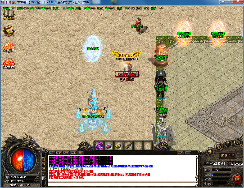 游戏介绍本服雷霆以上装备.单件佩戴即可触发属性!攻沙介绍第2天攻城,新区奖励20W元宝+奖池丰厚奖励游戏介绍本服绝对大众消费,纯纯的散人元宝服散人注意元宝回收比例超高.后期一小时打100块元宝.装备层次赤月装备-雷霆装备-战神装备-黄金装备元宝比例点卡1:1000 网银1:2000 多冲多送 实惠多多