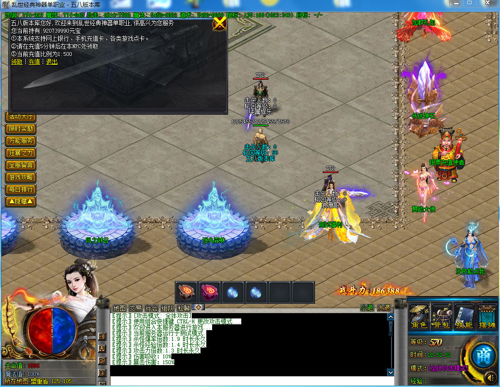 【充值比例】 :网银冲值1:1000银票..注意:本服永久不卖元宝,全部靠打!任意怪爆银票,银票永久回收!