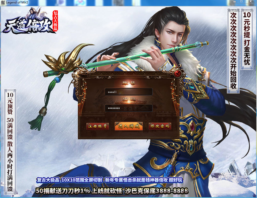 特色01: 10米顶赞50满回馈50捐献刀刀秒1.上线就是砍BOSS必出1-20充值