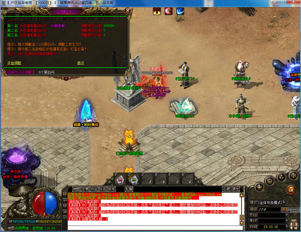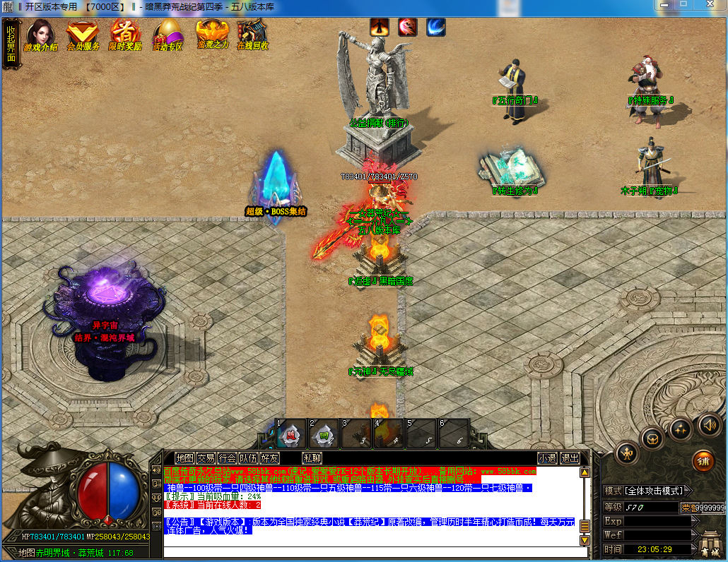 健康游戏忠告 抵制不良游戏,拒绝盗版游戏。 注意自身保护,谨防受骗上当。 适度游戏益脑,沉迷游戏伤身。 合理安排时间,享受健康生活。【莽荒纪】大型史诗神器微变,在现修仙世界! 充值比例:1网银=2000元宝+100黑白丹游戏介绍:修仙渡劫丶破碎虚空丶探索遗迹丶奇遇法宝世界地图:游戏分三大篇章(三界篇丶雾岩星丶茫崖国...后续持久更新)法宝武器:先天法宝丶混沌奇宝丶道之神兵丶永恒神兵丶宇宙之宝等...攻沙奖励:开区三天拿沙,保证玩家发展,奖励详情,游戏查询!官方提醒:请不要使用过于简单的用户密码,二级密码等-禁止空白名关于封挂:定制封挂网关+万米封挂插件,封杀99%外挂!【爆率说明】所有BOSS都可爆出特殊装备、特殊首饰、技能书,BOSS血量越高爆率越高!承诺一切物品可爆出!【游戏版本】:新区打装备发展势力,真正激情在合区后开始!别抱怨爆率低,爆率太高你会觉得终极也是垃圾!【游戏版本】:服务器封闭了穿人,和外挂!相对来说更加平衡,更加需要合作,希望大家能在这里多交一些朋友,我们是复古版传奇!所以更多的怪物是需要配合去打的!【游戏版本】:服务器属于长久服务器,!很多地方需要大家有团队精神一起击杀BOSS。。。所以长期玩家请摆正心态,大家可以自行建立YY一起交流,一起游戏!【游戏版本】:新手上线赠送神宠降临,可找木子朔提升宠物等级,道士可使用召唤神兽多召唤一只宝宝,记住:先召唤神宠物在使用召唤神兽--79级前级带一只一级神兽--80级带一只二级神兽--90级带一只三级神兽--100级带一只四级神兽--110级带一只五级神兽--115带一只六级神兽--120带一只七级神兽【游戏声明】:专业管理不间断24小时在线管理,及时解决问题,查封外挂,使用任何外挂,关联帐号(大小