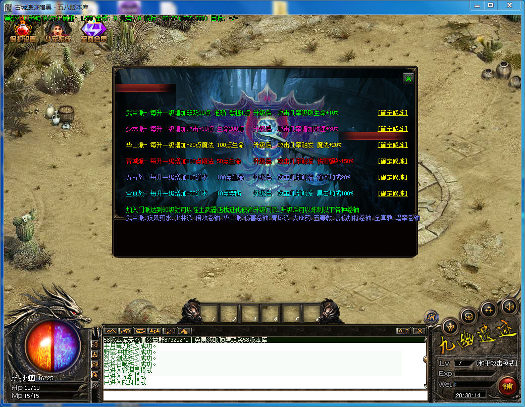 独家门派系统:武当、少林、华山、青城、五毒、全真教派