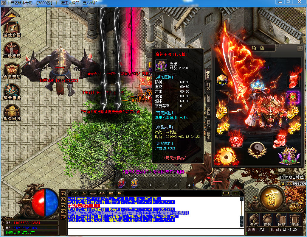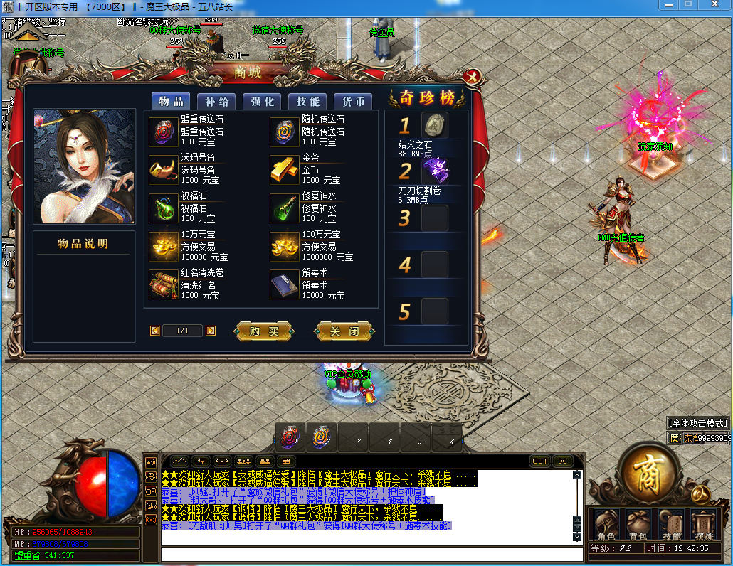 游戏介绍:元宝比例1:5000元宝100魔神币1充值点1米点