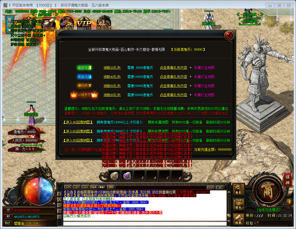 【充值比例】1米=500积分+500酒鬼币 测试充值多送20%, 无比例,无待遇!