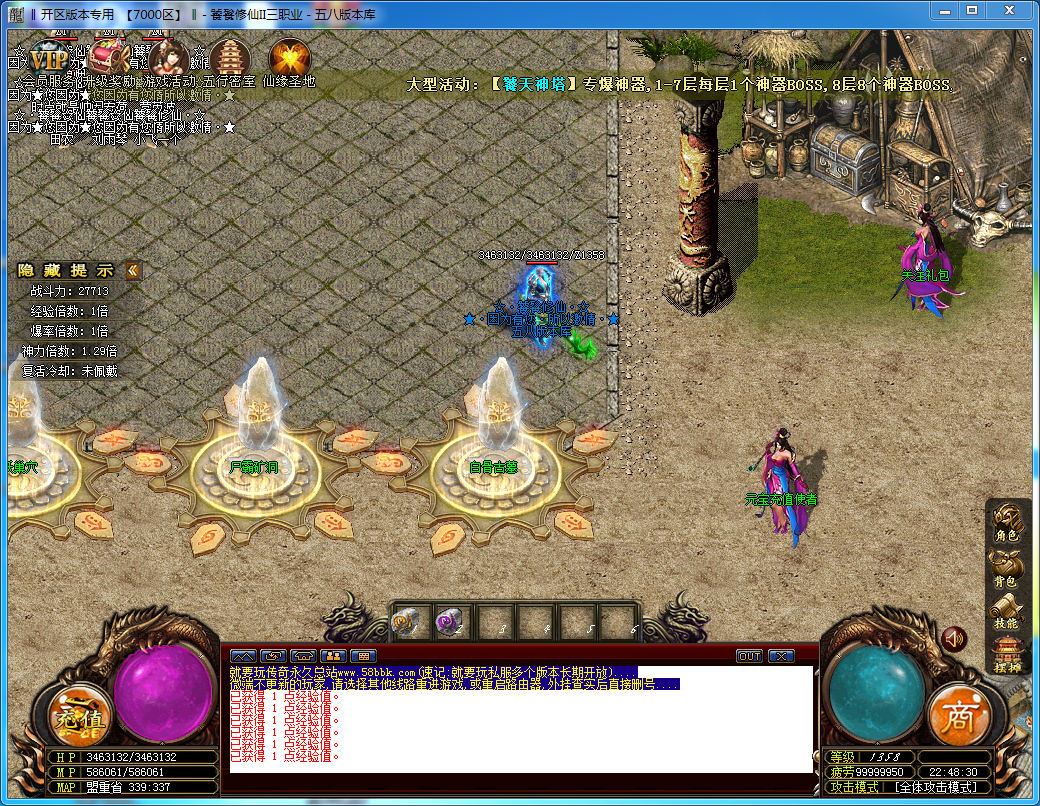 4:本服封顶 1000级 ,只能通过打怪练级,练级房内为无限刷怪