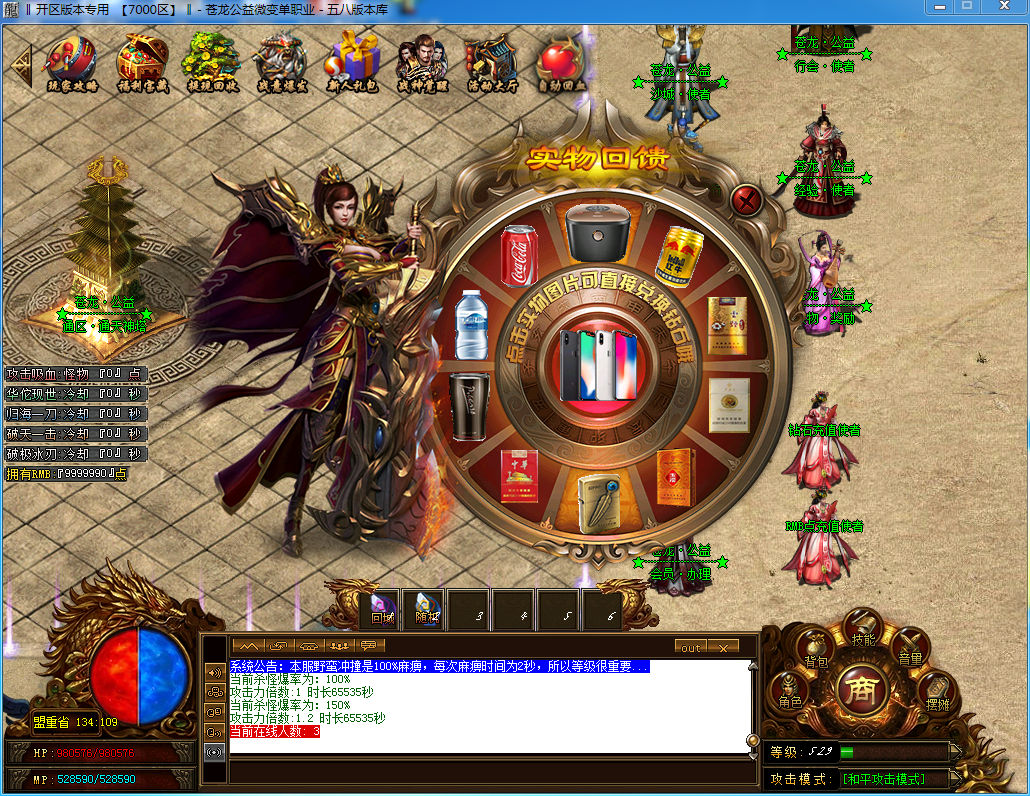 本服特色之三:90级以后地图 最顶层都刷 (苍龙公益·BOSS)打死高几率出好东西