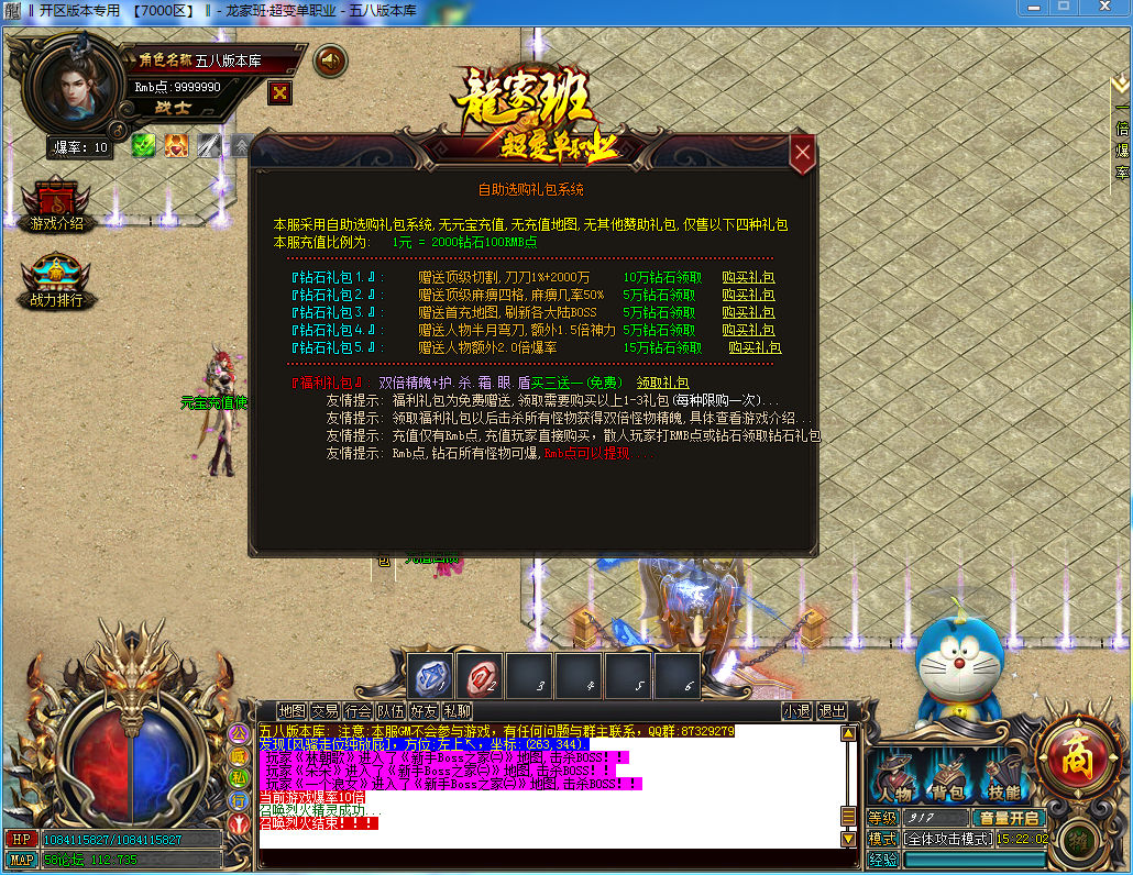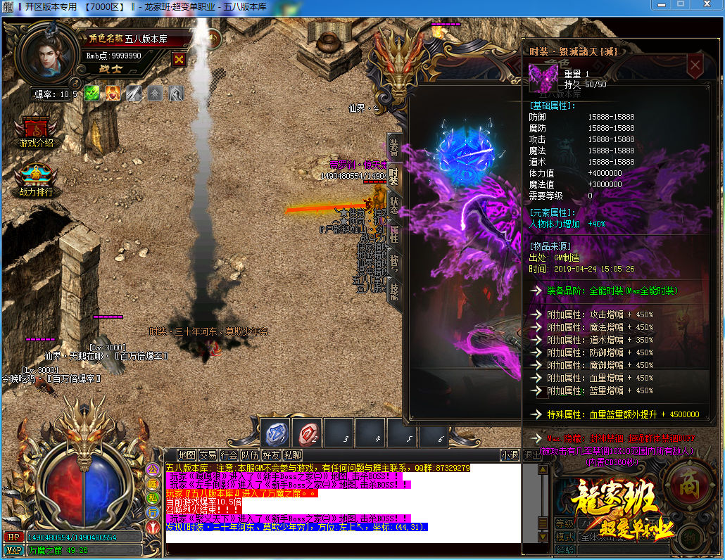 每个大陆专属BOSS击杀达到100会刷新超级BOSS,全服提示,全服最高爆率