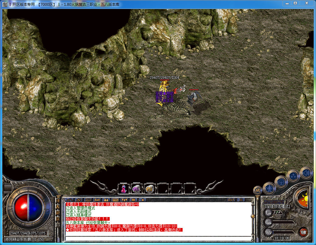 【新手指南】:30级以下建议在僵尸洞练级,30级以上蜈蚣洞或者猪洞,35级以上可以选择,祖玛.封魔.苍月.赤月练级