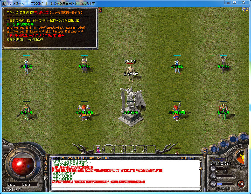 【行会争霸】:开区3天开放会刷新一只世界BOSS爆率超高,获胜方行会成员奖励5W金币