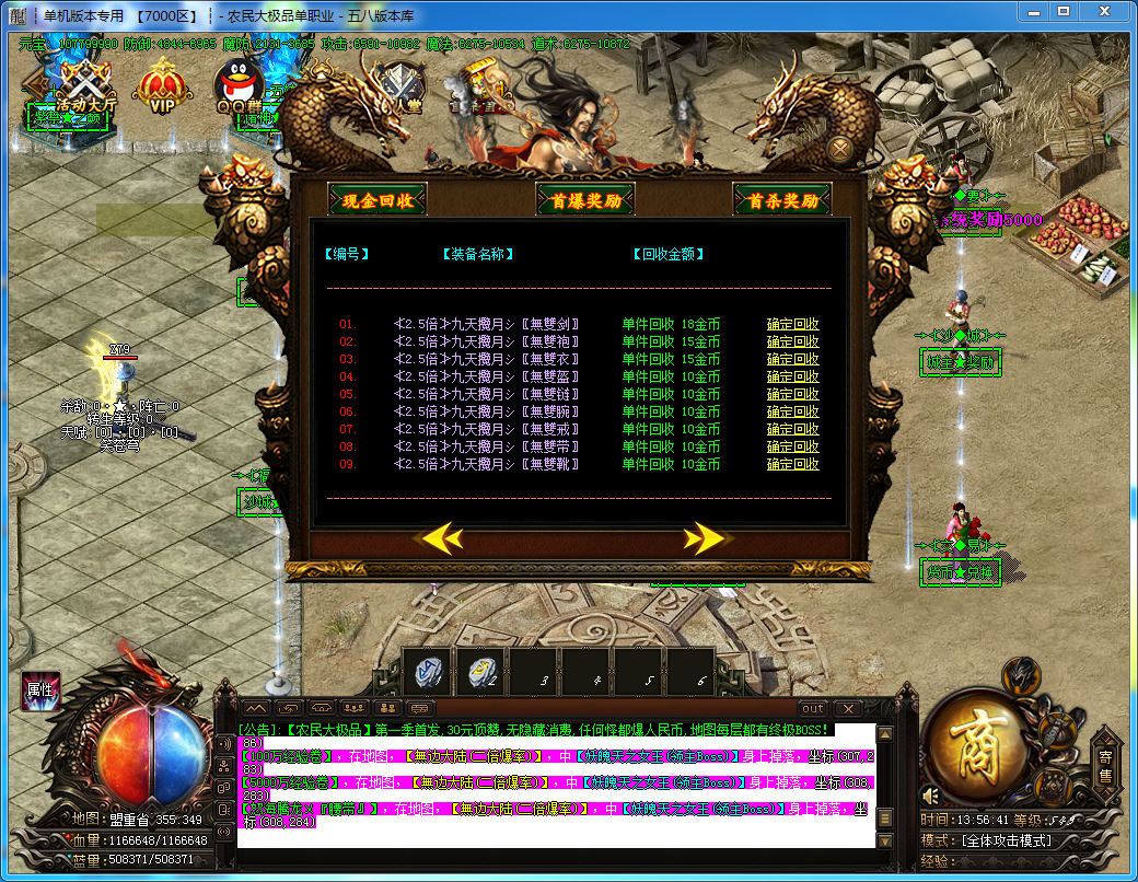 农民大极品单职业传奇版本-带假人-世界Boss-必爆高级技能-战魂塔