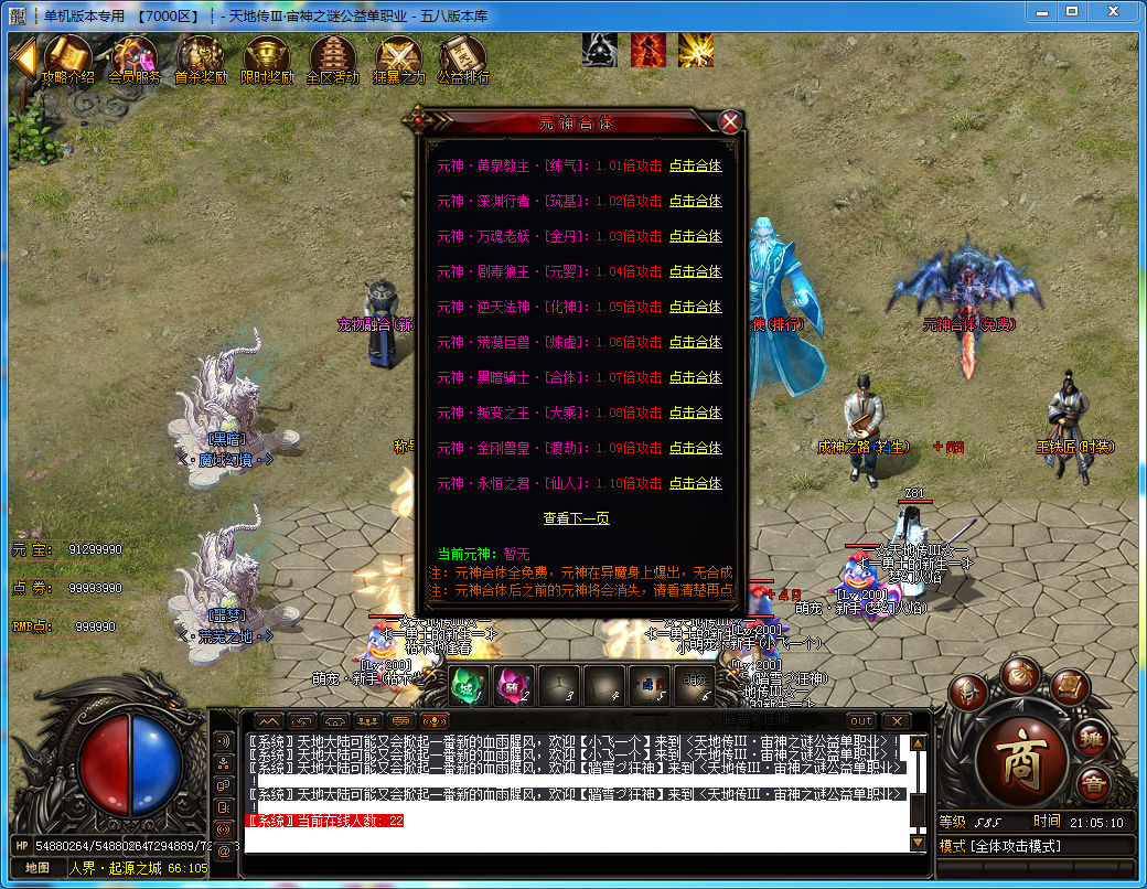 【更新内容5】:取消第四大陆合成终极首饰,及斗笠,新增第五大陆[圣境-海域]终极全靠打、无隐藏消费!