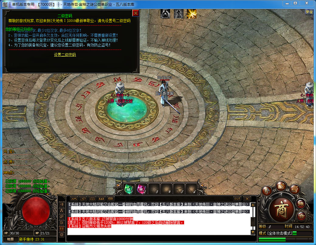【版本介绍2】:2019年最新单职业,天地之旅,打破一切常规本服所有材料、元宝、装备全部靠打!