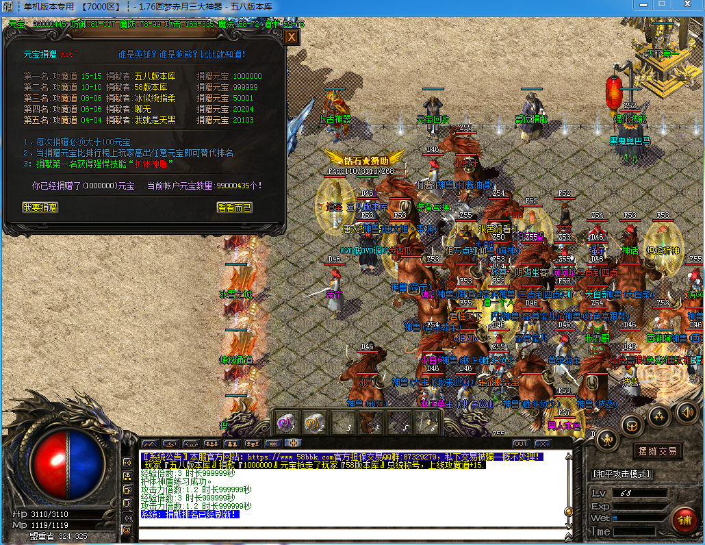 【沙城信息】:新区第2天晚上集体攻沙,首次拿沙奖励50W元宝+三种宝石