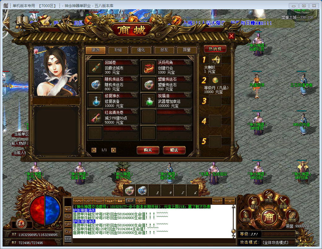 1 神念网络全新旗舰版本 神念神器 百种BOSS 超8000件散件装备 无任何合成,充值地图,装备全部靠爆出。